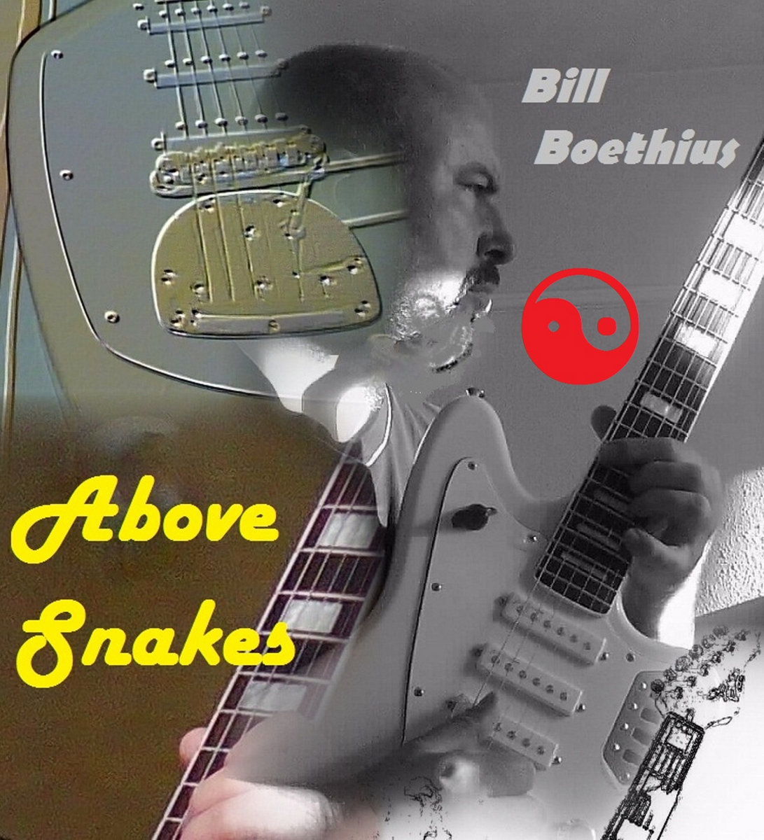 The sky guitars used here were an Epiphone Les Paul for all the crunchy riffs, reverbed leads and some of the wails along with the Ibanez GAX. The cleaner jazzy patterns were also the Les Paul [it’s a versatile beast, as Furtkamp would say]. The whammy bar stuff was a new four pick up Jaguar/Jazzmaster type guitar I just got from Revelation [on cover pic]. That is what is known in the biz as a ‘tone monster’! The bass is my trusty 5 string Crafter. I dedicate the bass riffs on this to Solar Maximum as they are in their ballpark.